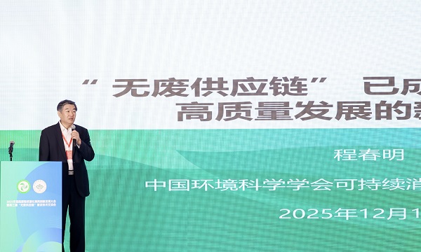 张耀东在致辞中指出,要统筹推动固废资源化与供应链绿色化,积极构建覆盖源头减量、过程循环、末端资源化的全链条体系;要有效推动“无废”与“低碳”协同发展,将固体废物资源化利用纳入谈减排核算体系;要通过政策引导、技术创新与模式创新,将“无废城市”建设与供应链绿色发展深度融合。程春明在报告中指出,“无废供应链”已成为危废资源化高质量发展的新引擎,构建覆盖源头减量、过程循环与末端资源化的全链条模式,是推动产业绿色转型、应对国际绿色贸易壁垒、提升产业链韧性的重要路径。
