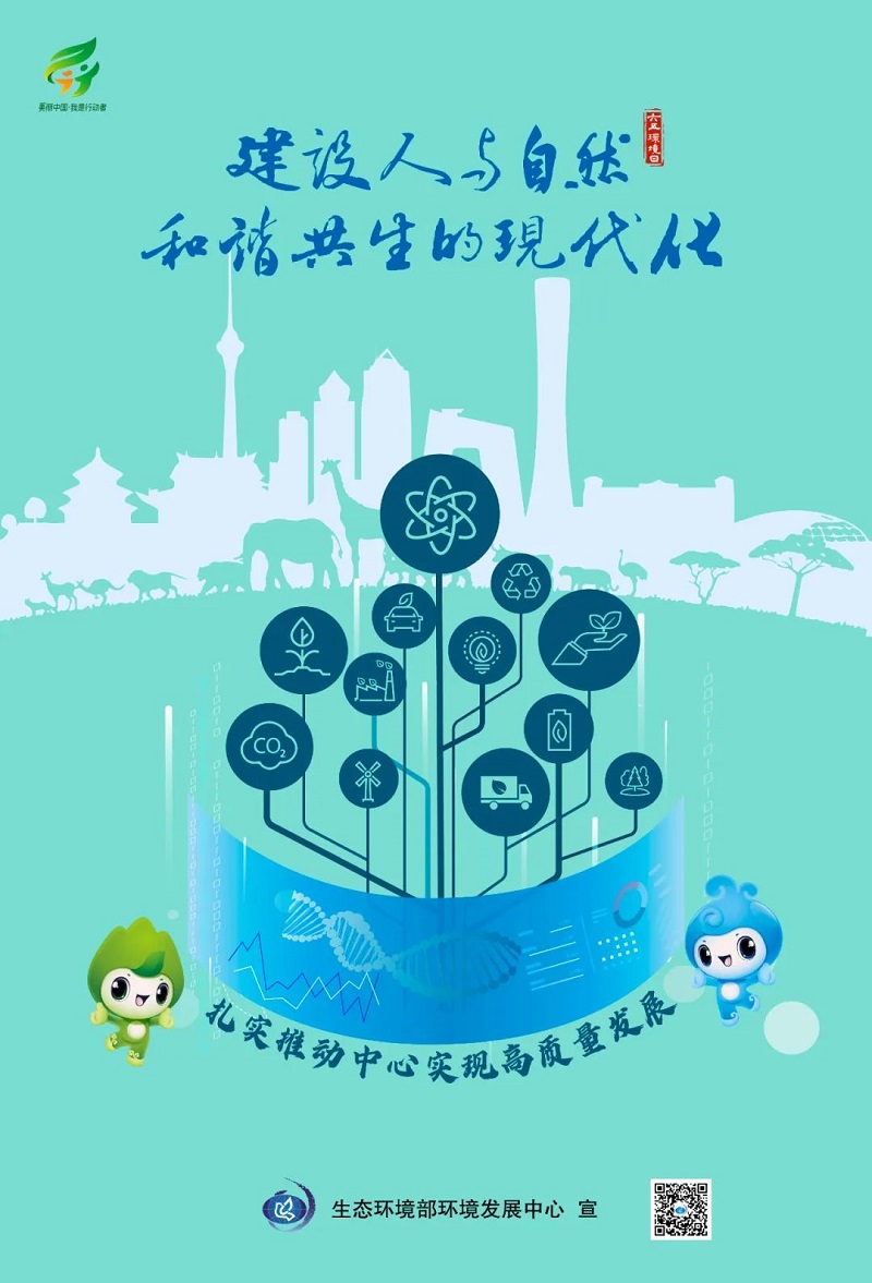 环境发展中心发布的主题海报寓意为:中心将按照精准治污、科学治污、依法治污的工作方针和协同推进降碳、减污、扩绿、增长的总要求,聚焦主责主业、有效协同整合,积极助力绿色低碳发展,有力支撑持续深入打好污染防治攻坚战,全面加强统筹保障管理,扎实推进中心高质量发展,为建设人与自然和谐共生的现代化和实现美丽中国目标贡献力量。