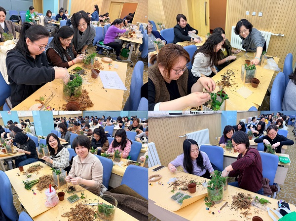 为纪念“三八”国际妇女节,进一步营造和谐向上的文化氛围,凝聚巾帼力量,鼓励广大女职工以饱满的热情投身生态环境保护事业,助力深入打好污染防治攻坚战,中心妇工委联合中心工会于3月10日组织开展了“指尖上的微景观”——“三八”妇女节手作体验活动。中心党委副书记兼纪委书记禹军来到活动现场,代表中心党委向全体女职工致以诚挚的节日问候和美好祝福,并希望大家通过活动充分感受自然之美、手作之趣,把对环保事业的热爱、对美好生活的憧憬,融入到小小的景观之中,在绿意盎然中收获愉悦、增进情谊。中心妇工委主任、总工程师陈瑶主持本次活动。